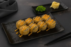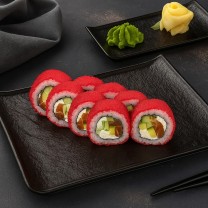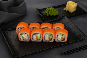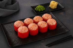 Состав: мясо краба, японский майонез, огурец, оранжевая масаго