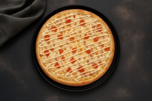 Томатный соус, сыр моцарелла, сыр гауда, сыр эдам, сыр пармезан.