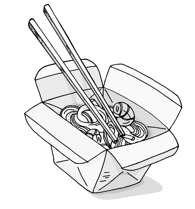 Лапша удон, морковь, перец, курица, кунжут, соевый соус