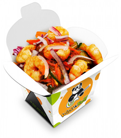 Стеклянная лапша, креветки, морепродукты, морковь, капуста, перец болгарский, фасоль, брокколи, соевый соус, устричный соус, кунжут.