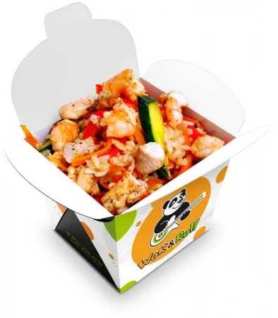 Рис, свинина, перец болгарский,, морковь, шампиньоны, терияки, соевый соус, кунжутное масло, кунжут.