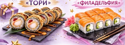 С понедельника по четверг при заказе от 1299 руб подарок ролл Тори💥 от 1899 Филадельфия в подарок